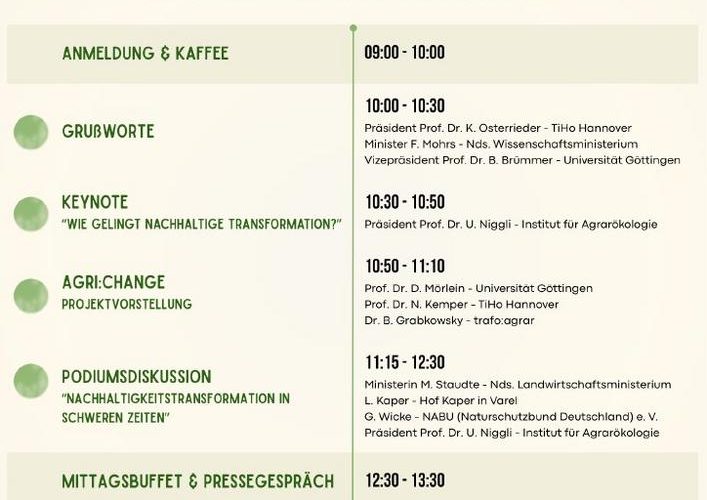 Eingebettet in die Tagung „Zukunft durch Wandel?!“ Mit einer öffentlichen Auftaktveranstaltung startet das Verbundvorhaben agri:change, das konkrete Transformationspfade für eine zukunftsfähige Agrar- und Ernährungswirtschaft entwickeln will. Die Auftaktveranstaltung ist eingebettet in die Tagung „Zukunft durch Wandel?! – Brauchen wir Nachhaltigkeitstransformation in schweren Zeiten?“ am 23. Februar 2026 an der Stiftung Tierärztliche Hochschule Hannover. Tagungsinhalte Im Fokus […]