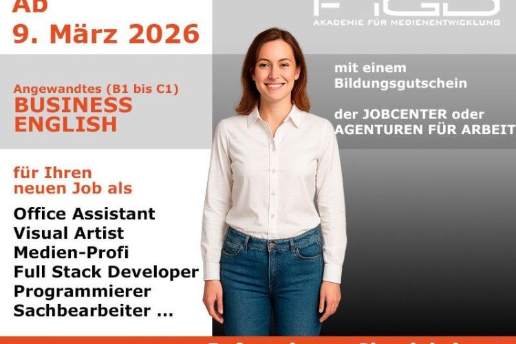 Business English für Ihren beruflichen Neustart Am 09. März 2026 startet die praxisorientierte Weiterbildung „Angewandtes Business English (B1–C1)“, die Sie gezielt auf die Anforderungen eines internationalen Berufs- und Geschäftsalltags vorbereitet. In einer global vernetzten Arbeitswelt sind sichere Englischkenntnisse längst ein entscheidender Wettbewerbsfaktor. Ob im Office-Management, in der Medienbranche, in der IT oder im kaufmännischen Bereich […]