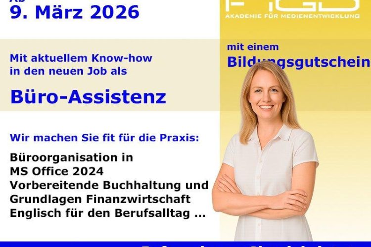 Büro-Assistenz professionell qualifiziert – Start März 2026 Am 09. März 2026 beginnt die praxisorientierte Vollzeit-Weiterbildung zur Büro-Assistenz. In einer modernen Arbeitswelt, in der organisatorische Kompetenz, digitale Office-Kenntnisse und kaufmännisches Verständnis entscheidend sind, werden qualifizierte Fachkräfte im Büro- und Verwaltungsbereich dringend gesucht. Diese Weiterbildung bereitet Sie gezielt auf die Anforderungen im Office-Management, in der Sachbearbeitung sowie […]