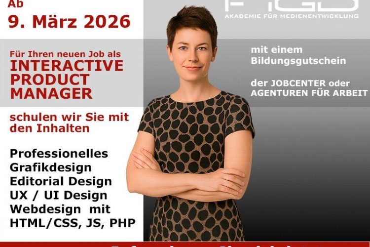 Interactive Product Manager – Digitale Produkte strategisch entwickeln Am 09. März 2026 beginnt die umfassende Vollzeit-Weiterbildung zum Interactive Product Manager. In einer digital geprägten Wirtschaft sind Fachkräfte gefragt, die kreative Gestaltung, technische Umsetzung und strategische Produktentwicklung miteinander verbinden. Diese Qualifizierung bereitet Sie gezielt auf die Planung, Entwicklung und Steuerung interaktiver Medienprodukte vor. Die Weiterbildung läuft […]