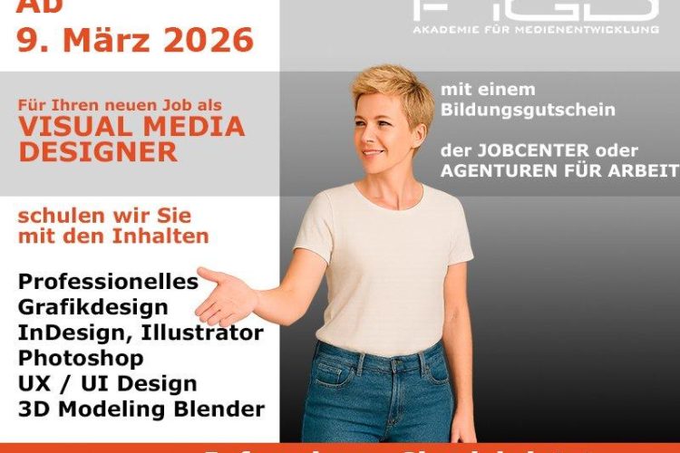 Visual Media Designer – Ihre kreative Zukunft im digitalen Design Am 09. März 2026 startet die praxisorientierte Vollzeit-Weiterbildung zum Visual Media Designer mit Schwerpunkt UX Design. In einer digitalen Medienwelt, die von visueller Kommunikation, Benutzerfreundlichkeit und interaktiven Anwendungen geprägt ist, sind qualifizierte Designerinnen und Designer gefragter denn je. Diese Qualifizierung verbindet professionelles Grafikdesign mit UX/UI-Kompetenz, […]