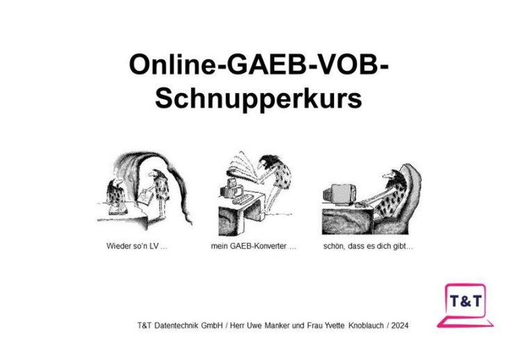 Online-GAEB-Basisseminar Teil 1 (Theorie)Grundlagen des GAEB-Datenaustausches / Einführung in den GAEB-Konverter Hier werden die Grundfragen geklärt:– Wer oder Was ist überhaupt GAEB?– Was gibt es für verschiedene Formate und wo genau liegen die Unterschiede?– Wie muss ein LV nach GAEB aufgebaut sein (Gliederung und Ordnungszahlen)? Sie benötigen lediglich:– einen PC/Notebook mit Internetanschluss, auf dem der […]