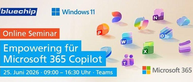 Wir freuen uns, Sie am Mittwoch, den 29. April 2026, um 10:00 Uhr per Microsoft Teams digital begrüßen zu dürfen. In diesem kostenfreien Teams-Meeting erhalten Sie einen Überblick über unser bluechip Cloud-Center. In diesem kostenfreien Teams-Meeting zeigen wir Ihnen das Handling von unseren bluechip Cloud-Centers hinsichtlich der Eigenmarke-Dienste, sowie der Buchung von Microsoft-Produkten: Themenfelder: Workplace-as-a-Service […]