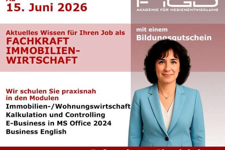Fachkraft Immobilienwirtschaft werden – Ihre Weiterbildung in Präsenz Wer sich beruflich neu orientieren und im Bereich Immobilien, Verwaltung und wirtschaftsbezogener Organisation eine fundierte Qualifikation erwerben möchte, findet mit der Weiterbildung zur Fachkraft Immobilienwirtschaft an der FiGD Akademie eine praxisnahe und arbeitsmarktorientierte Möglichkeit für den Einstieg in ein vielseitiges Berufsfeld. Die Weiterbildung wird in Präsenz durchgeführt […]