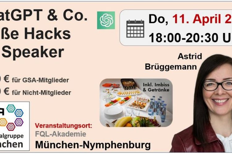 Von Astrid Brüggemann erfahren Sie an diesem Abend ganz konkret: Überblick über ChatGPT für Anfänger und Fortgeschrittene Kluge Prompts und Seeds, um ChatGPT möglichst sicher und effizient zu nutzen. Sie erfahren die Fallstricke und Fehlerquellen. Sie lernen Strategien, um diese zu beheben. Was man neben Browser-Plugins noch über ChatGPT & Co. wissen sollte Was wollen Sie wissen? Stellen Sie gezielt Fragen rund um ChatGPT & Co.! Astrid Brüggemann nutzt seit […]