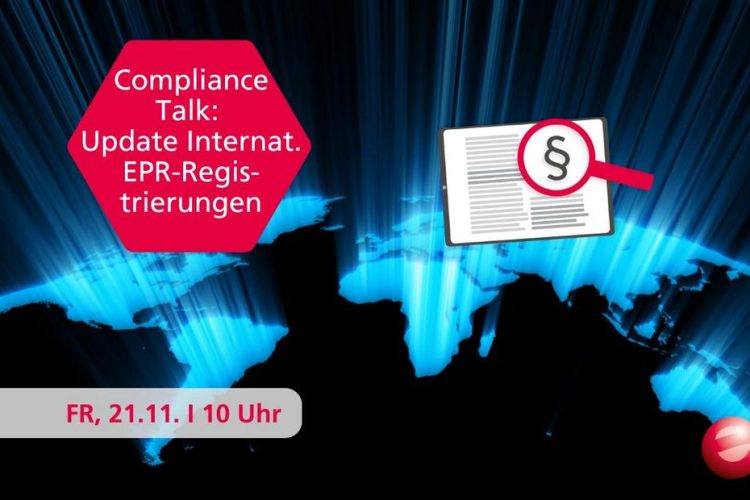 Compliance Talk im November: Update Internationale EPR-Registrierungen – Alles klar, oder noch Fragen? Save the Date! Kostenloses Live-Update am Freitag, 21. November, 10:00 Uhr EPR-Verpflichtungen entwickeln sich rasant – neue Vorgaben, neue Abfallströme, neue Länder. Wer international vertreibt, muss den Überblick behalten. Jetzt hier schon anmelden und vorbereitet sein! Eventdatum: Freitag, 21. November 2025 10:00 […]