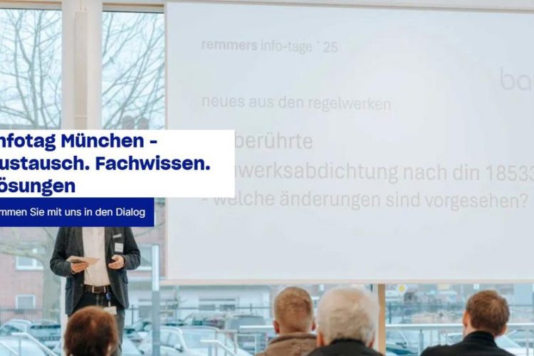 Erleben Sie einen praxisnahen Tag, der Techniken der erdberührten Bauwerksabdichtung im Neubau und im Altbau, den gezielten Einsatz Künstlicher Intelligenz in der Planung, sowie rechtssichere Nachträge in den Fokus nimmt. Anhand einer Remmers-Referenz wird Planungspraxis konkret greifbar. Inhalte im Überblick: Techniken der erdberührten Bauwerksabdichtung im Neubau Abdichtungstechniken für die Sanierung Künstliche Intelligenz für die Planung […]