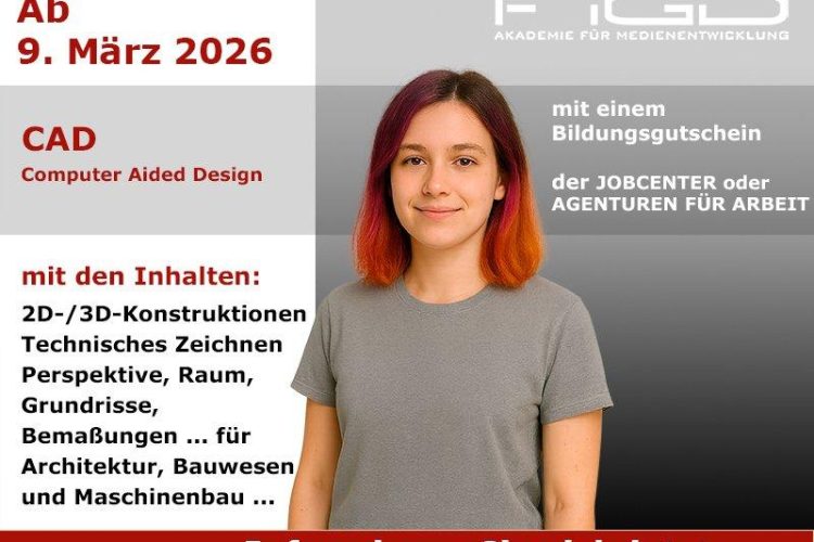 Am 09. März 2026 beginnt eine praxisorientierte CAD-Weiterbildung, die Ihnen neue berufliche Perspektiven in Architektur, Bauwesen, Facility Management und Maschinenbau eröffnet. In einer Zeit, in der digitale Planungs- und Konstruktionsprozesse zum Standard gehören, sind fundierte Kenntnisse in 2D- und 3D-Konstruktionen entscheidend für Ihren beruflichen Erfolg. Genau hier setzt die Qualifizierung der FiGD Akademie an und […]