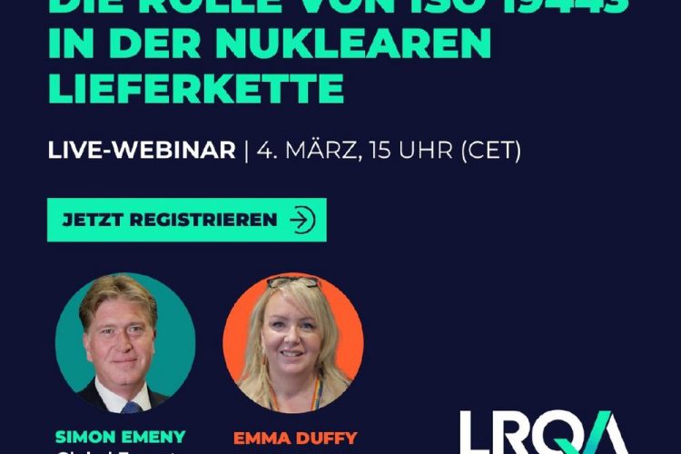 Webinar: Die Rolle der ISO 19443 in der nuklearen Lieferkette4. März 2026 | 15:00 Uhr (CET) | Online & kostenfrei | Englisch Wie können Unternehmen der Nuklearbranche höchste Qualitäts- und Sicherheitsanforderungen zuverlässig erfüllen? In diesem gemeinsamen Webinar von LRQA und Framatome erfahren Sie, welche Bedeutung die ISO 19443 für die nukleare Lieferkette hat – und […]