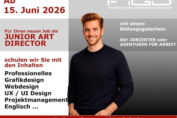 Junior Art Director online werden: Ihr kreativer Neustart beginnt jetzt Wer sich beruflich neu orientieren und gleichzeitig gestalterische, digitale und konzeptionelle Kompetenzen auf ein professionelles Niveau bringen möchte, findet mit der Weiterbildung zum Junior Art Director an der FiGD Akademie einen überzeugenden Einstieg in ein modernes Berufsfeld mit Zukunft. Die Weiterbildung wird im Onlinekurs durchgeführt […]
