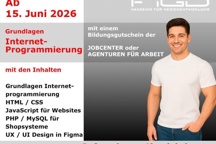 Internetprogrammierung online lernen und digital neu durchstarten Wer sich beruflich neu orientieren und in einem zukunftsstarken IT-Bereich Fuß fassen möchte, findet mit der Weiterbildung Grundlagen Internetprogrammierung an der FiGD Akademie einen praxisnahen Einstieg in die moderne Web- und Softwareentwicklung. Die Weiterbildung wird als Onlinekurs durchgeführt und richtet sich an Menschen, die digitale Technologien verstehen, Webseiten […]