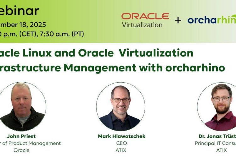 Oracle Linux and Virtualization Management with orcharhino Date: Tuesday, November 18, 2025, 16:30 p.m. (CET) Language: English Simplify Infrastructure and Virtualization Management Discover how orcharhino provides a unified, vendor-neutral platform for managing Oracle Linux and Oracle Virtualization environments. Learn how it integrates deployment, configuration, automation, and reporting to simplify complex IT operations. Seamless Integration with […]