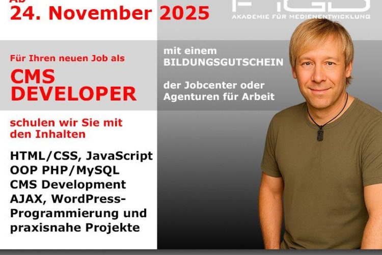 Moderne Webseiten benötigen mehr als nur Design – sie brauchen stabile, anpassbare und dynamische Systeme im Hintergrund. Die Weiterbildung „CMS Developer“ der FiGD Akademie bereitet Sie in einem intensiven Onlinekurs auf genau diese Anforderungen vor. Der Start ist am 24. November 2025. Die Teilnahme ist vollständig förderfähig über den Bildungsgutschein. Der Fokus liegt auf der […]