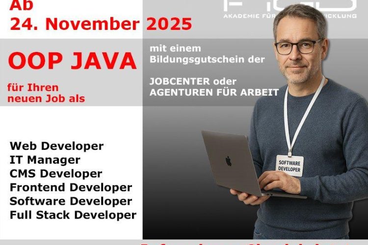 Die objektorientierte Programmierung mit Java gehört zu den gefragtesten Qualifikationen im digitalen Arbeitsmarkt. Mit der Weiterbildung „OOP Java“ der FiGD Akademie in Berlin erwerben Sie alle nötigen Grundlagen für eine berufliche Tätigkeit in der Anwendungsentwicklung – praxisnah, kompakt und zu 100 % förderbar mit Bildungsgutschein. Der Kurs beginnt am 24. November 2025 und wird in […]