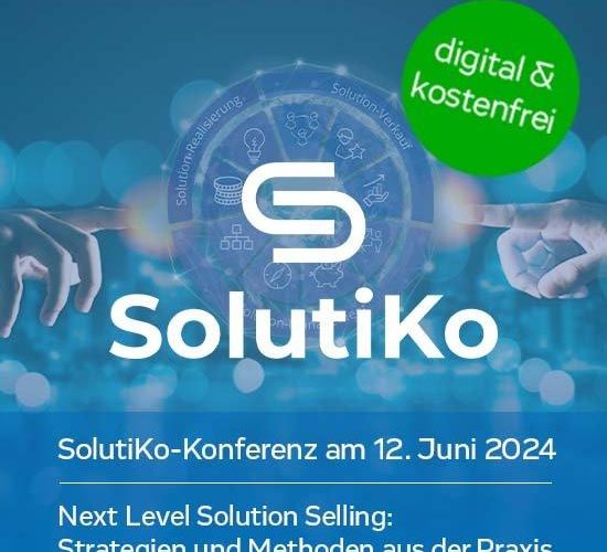 Next Level Solution Selling: Strategien und Methoden aus der Praxis Die Transformation vom Produkt- zum Lösungsanbieter öffnet produzierenden Unternehmen erhebliche Potenziale für zusätzliche Erträge sowie eine langfristige Kundenbindung. Gleichzeitig erfordert dieses Geschäftsmodell gänzlich neue Fähigkeiten sowie Kompetenzen und insbesondere eine Neuausrichtung an der Schnittstelle von Service und Vertrieb. Die digitale SolutiKo-Konferenz 2024 bietet Ihnen Wissen […]
