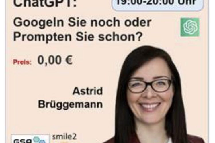 Von Astrid Brüggemann erfahren Sie an diesem Abend ganz konkret: Überblick über ChatGPT für Anfänger und Fortgeschrittene Kluge Prompts und Seeds, um ChatGPT möglichst sicher und effizient zu nutzen. Sie erfahren die Fallstricke und Fehlerquellen. Sie lernen Strategien, um diese zu beheben. Was man neben Browser-Plugins noch über ChatGPT & Co. wissen sollte Was wollen Sie wissen? Stellen Sie gezielt Fragen rund um ChatGPT & Co.! Astrid Brüggemann nutzt seit […]