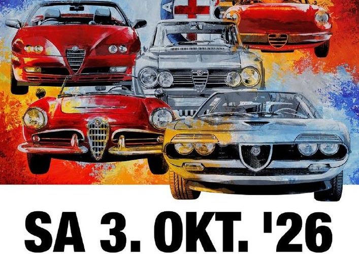 2. Länderübergreifende Alfaclub Präsentation Am Samstag, 3. Oktober 2026 von 10 – 16 Uhr im MAC Museum, 78224 Singen Einfahrt für alle Alfa Romeo Fahrzeuge sowie Gastmarke FIAT mit Spider, Barcetta und FIAT 500 Plakatgestaltung Bernd Luz Programm PopArt-Ausstellung BERND LUZ Catering und Café Verkauf von Automobilia Große Tombola und Verlosung einer Reise zugunsten der […]