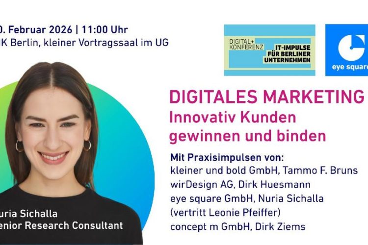 Die Digital + Konferenz, organisiert von der IHK Berlin, HTW Berlin und der Handwerkskammer, findet am 10. Februar 2026 statt und bietet ein Programm für Entscheidungsträger zu digitalen Themen. Eines der Highlights ist der Themenblock „Digitales Marketing – Innovativ Kunden gewinnen und binden“. Unsere Brand und Media Expertin Nuria Sichalla wird aus der Perspektive von […]