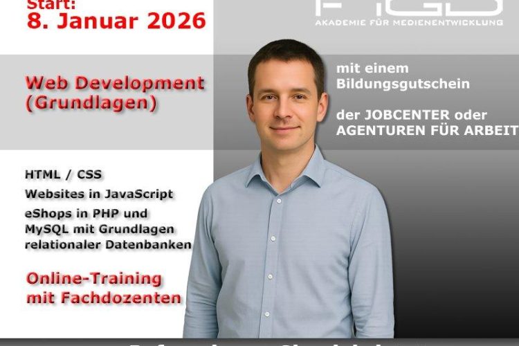 Digitale Kompetenzen sind der Schlüssel zu vielen zukunftssicheren Berufen – insbesondere im Bereich der Webentwicklung. Wer sich in diesem Feld neu orientieren oder grundlegende Kenntnisse aufbauen möchte, hat jetzt die Möglichkeit dazu: Die Online-Weiterbildung „Web Development (Grundlagen)“ der FiGD Akademie startet am 08. Januar 2026 und vermittelt in rund drei Monaten fundiertes Know-how in der […]