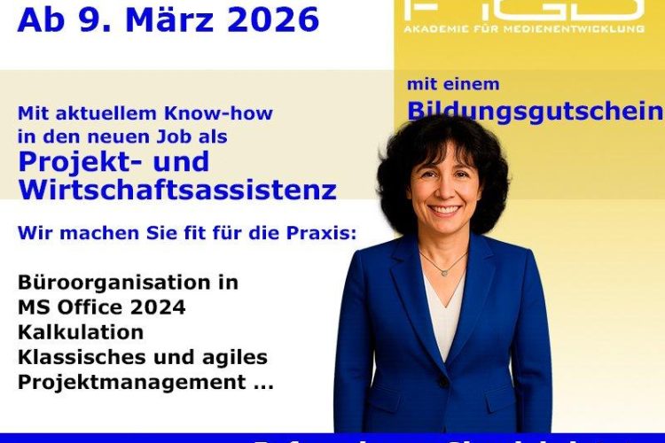 Organisationstalent, Kommunikationsstärke und ein sicherer Umgang mit modernen Büro-Tools sind Schlüsselqualifikationen in der heutigen Arbeitswelt. Die Weiterbildung „Projekt- und Wirtschaftsassistenz“ der FiGD Akademie vermittelt in nur drei Monaten genau diese Kompetenzen – kompakt, praxisnah und voll förderbar. Der Starttermin ist der 09.03.2026. Die Qualifizierung richtet sich an Menschen, die beruflich (wieder) einsteigen, sich neu orientieren […]