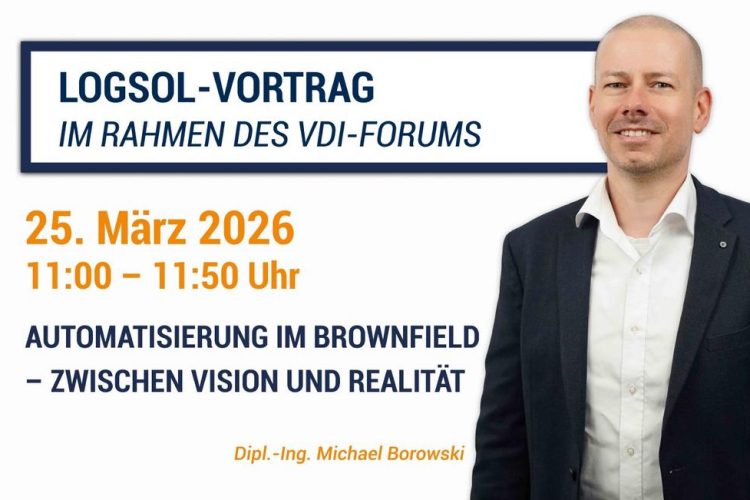 LOGSOL-Vortrag im Rahmen des VDI-ForumsDie Brownfield-Challenge: Das Runde muss ins Eckige Mittwoch, 25. März 2026 von 11:00 – 11:50 Uhr Michael Borowski, Dipl.-Ing. und Member of the Management Board der LOGSOL GmbH spricht über „Automatisierung im Brownfield – zwischen Vision und Realität“. Eventdatum: Mittwoch, 25. März 2026 11:00 – 11:50 Eventort: Stuttgart Firmenkontakt und Herausgeber der […]
