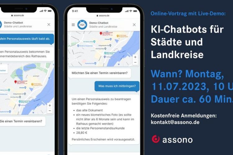 Am 11. Juli um 10 Uhr haben wir einen Online-Austausch zum Thema „Nutzen von KI-Chatbots für Städte und Landkreise“ geplant. In dem kostenlosen Zoom-Meeting sprechen unsere Chatbot-Experten mit Ihnen über die Vorteile eines KI-Chatbots für Städte und Landkreise, teilen Erfahrungswerte aus der Praxis und zeigen Ihnen eine Live-Demo. Viele Fragen, die Bürger an eine Stadt, […]