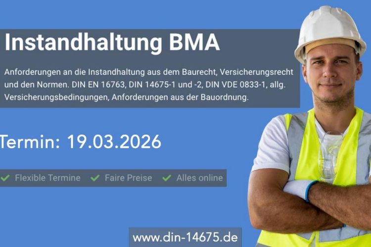 Unsere vollumfängliche Schulung zur verantwortlichen Person für Brandmeldeanlagen nach DIN 14675 Onlineschulung zur verantwortlichen Person für Brandmeldeanlagen nach DIN 14675: In jedem Unternehmen muss ein Mitarbeiter tätig sein, der die Prüfung zur verantwortlichen Person BMA nach DIN 14675 erfolgreich bestanden hat. Es ist völlig egal, bei welcher Gesellschaft Sie die Prüfung durchgeführt haben. Ab dem […]